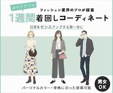ファッションの専門学校卒、某パリコレブランド勤務経験ありのファッションのプロがあなただけのオシャレな1週間コーディネートをご提案致します! ファッションアイテム12点(小物類...