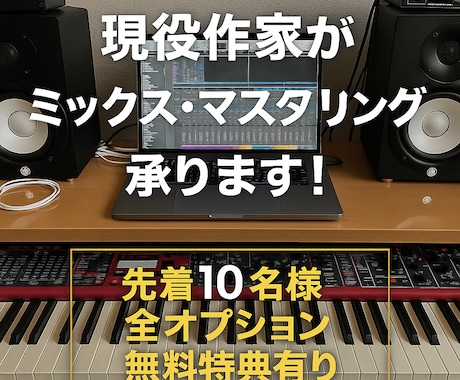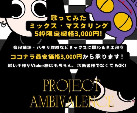 ミックス依頼、マスタリング依頼をしたければこちら。ココナラのサウンドクリエイター・スタジオエンジニアならオリジナル曲や各種ナレーションを素敵に仕上げてくれます。音圧が足りなくて悩んでいる方も必見です。ボーカルのピッチ修正・補正などもこちら。DMでの見積もり・相談は無料です。
