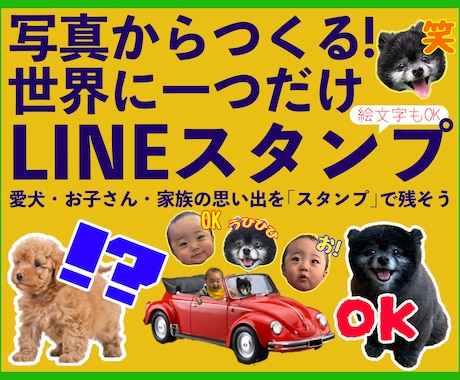 お子様の写真やペットの画像、カップルだけの内輪ネタを使った、プライベートで楽しむためのオリジナルスタンプ。