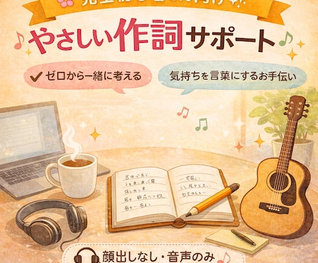 デモ音源(メロディ)に合わせて、テーマに沿った歌詞をゼロから書き下ろします。