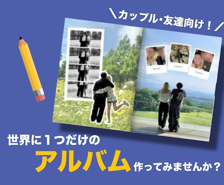 一年記念日のアルバムの作成をご依頼させていただきました! インスタでよく見るオシャレなアルバムにしたく、ご相談したところ、いろんな提案をしていただきとても素敵なアルバムが作れました!サプライズで彼氏に渡したらとても喜ばれました!ありがとうございます!また依頼させていただきたいです!