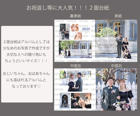 想像以上に素敵に仕上げてくださいます。 わたしのかなり大体なイメージを汲み取って、 オリジナリティ溢れる作品にしてくださいました。 テンプレは人と被りやすいけど、 自分だけの1冊を作っていただけるのは とても記念になると思います! 宝物の1冊です。