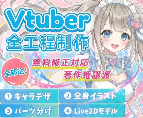 Vtuber(バーチャルユーチューバー)をやりたい方や同人・商用でキャラクターモデリングを依頼したい方におすすめ!ココナラでは2D,3Dモデリングを得意とする様々なクリエイター、デザイナーが50件以上のサービスを販売しています。FaceRigやLive2Dなどのソフトでそのまま使えるファイル形式での納品や商用利用OK、著作権譲渡などご希望に応じて見積もり・カスタマイズ可能です。まずは人気ランキングやおすすめ順などから一覧検索し、あなたの希望のサービスに見積もり依頼や制作相談してみましょう!