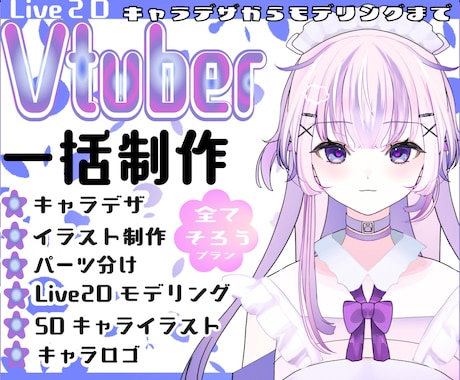 3.5万件以上の販売実績があり、キャラクターデザインからLive2Dモデリングまで、VTuber活動に必要な全てのクリエイティブをワンストップまたは分業で依頼できます。