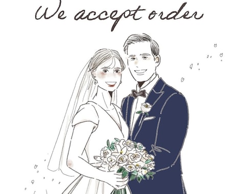 結婚式のウェルカムボードに使用する為に購入しました。 ドレスとタキシードは試着時の写真にもかかわらず、とっても素敵な絵を描いていただき本当に嬉しいです! 結婚式がより楽しみになりました。 ありがとうございました!