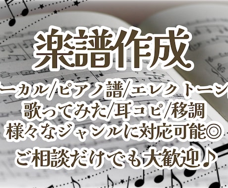 楽譜が販売されていない曲でも、音源さえあればプロが耳コピして楽譜にします。絶対音感を持つ出品者が多数在籍し、複雑な和音や速弾きフレーズも正確に採譜します。