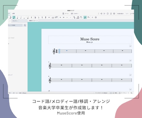 楽譜作成ソフトでデータを作り、PDF形式で納品されます。MIDIやMusicXMLでの納品も相談可能です。