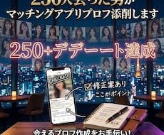 マッチングアプリのマッチ率を上げるために、高品質なプロフィール添削をプロに直接依頼できます。販売実績3,000件、700名規模の実績あるプロが「いいね」を増やす魅力的な文章を提案。リーズナブルに作成が可能で、最短即日納品も魅力です。理想の出会いのために、実績豊富なプロの技術を今すぐ活用してみましょう。