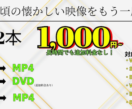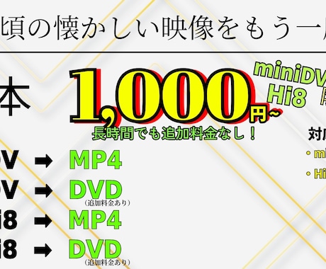 | VHS/8mmビデオのデジタル化 | 2,000円〜5,000円 | 1本。 |