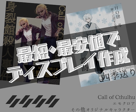 TRPG(テーブルトークRPG)に精通した500人以上のクリエイターが、探索者の立ち絵やディスプレイデザインを制作。システムの世界観を理解した上での提案が魅力です。