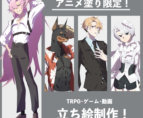TRPGのキャラクター、愛車のイラスト、結婚式のウェルカムボードや誕生日の似顔絵など、世界に一つだけのアート作品をオーダーメイドできます。