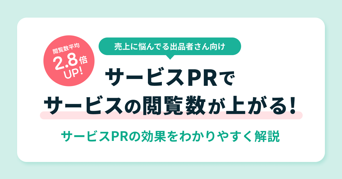 サービスPRは、「サービスに興味がありそうな購入者」に向けて出品サービスを宣伝できる機能です。実際にサービスPRに掲載後に購入されたサービスも多く、購入者に自分のサービスを見てもらうチャンスを増やすことができます。