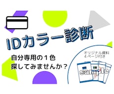 ◎IDカラー診断 ID=アイデンティティ 「◯◯さんといえばこの色!」となるような あなた専用の色が分かります。 お顔の雰囲気に似合う色は、その人の個性を引き立たせ、 ...