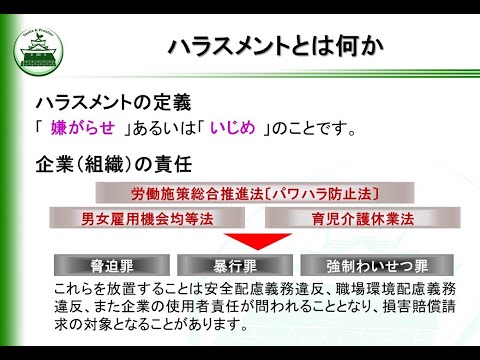 様々なハラスメントについて総合的に学習していただきます。