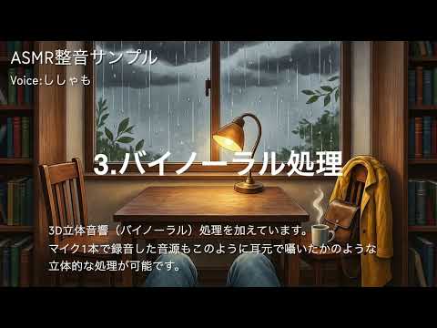 本サービスは、ASMR特有の心地よい質感を守りながら、ノイズを除去して商用レベルに整える「整音特化」のサービスです。