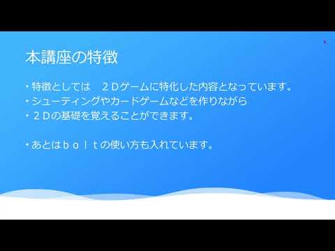 unityを触ったことがほぼ無く、プログラミングの知識も皆無と言っていいほどの私でも動画の通りにやっていけば簡単なブロックくずしやシューティングゲームが作れたりして感動しました。※動画の内容はブロック崩しとシューティングだけではないです、もっとあります た...