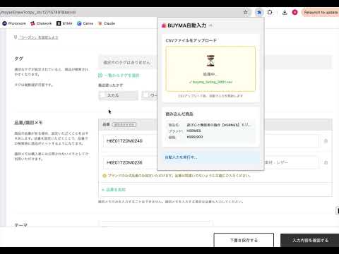 ・出品情報の収集、BUYMAページへの入力、画像ダウンロードや画像の加工は自動で行います。