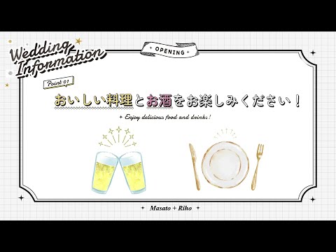 結婚式開宴前に楽しみ方を伝えるオープニング作ります たくさん飲んで・食べて・撮ってOKな結婚式のはじまり。