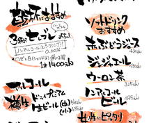独学の自由体文字となります♪ ※※※ちゃんとした文字は書けませんのでご了承ください※※※ 人目をひく文字は、POP、メニュー等にも使えるかと思います♪ 文字を書くときは空間を意識して描いています。 そう「描いている」←この言葉が私の文字を書く時のイメージです。 ただ、イラストが描けないのが欠点です。 他にできること・・・画像編集ソフト(イラストレーター・GIMP・ラベルマイティー)/動画作製/木工作品/