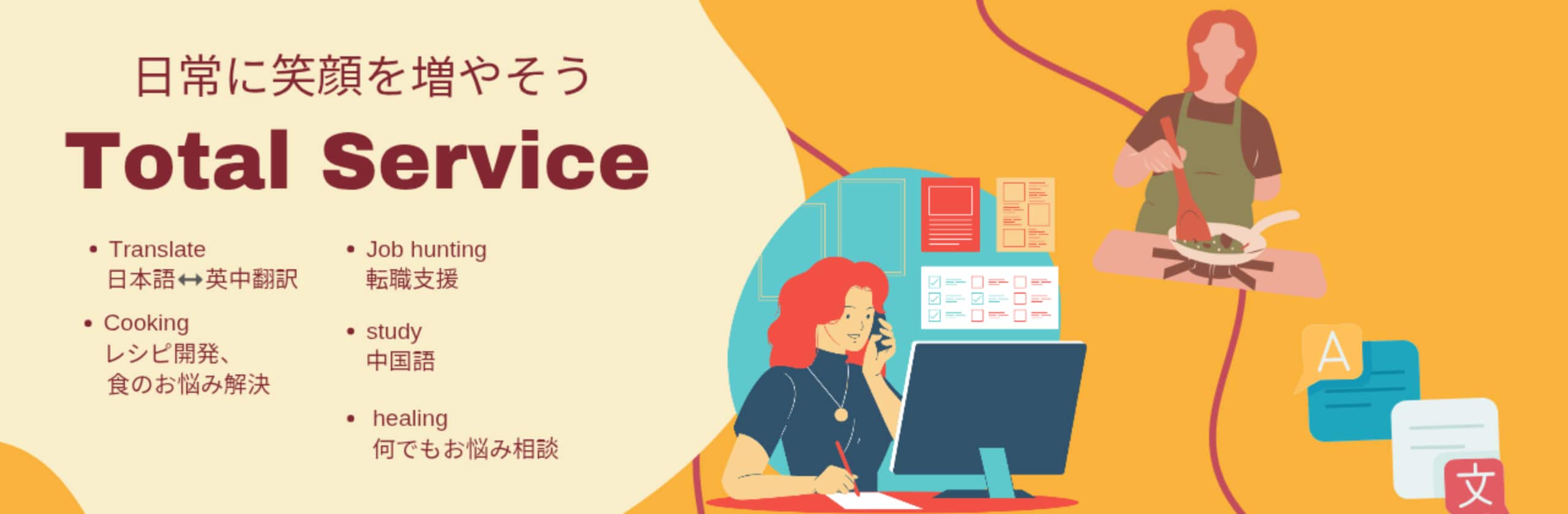 中国語、英語、レシピ開発、転職支援 経験年数:10年