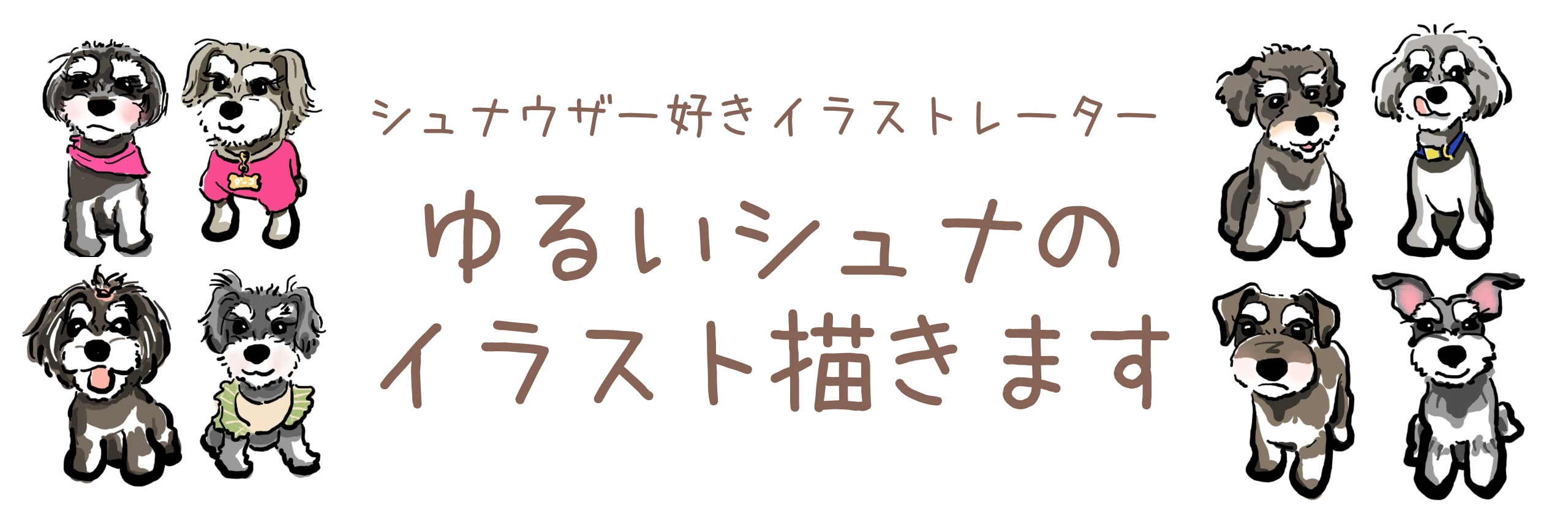 ミニチュアシュナウザーと暮らしています。なので、シュナの生態や表情を常に観察しています。その観察力を活かしてイラストに描き起こしています。みなさんの犬の写真を参考にして、魅力ある絵を描いていきます。