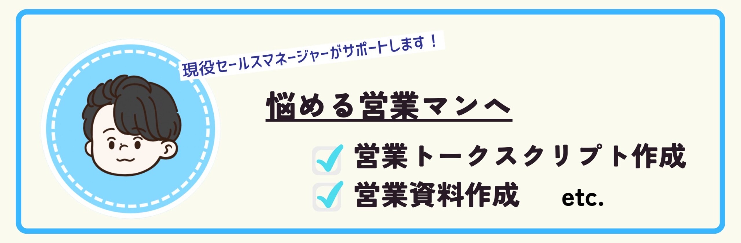 累計商談数5,000件以上 テレアポ獲得数10,000件以上!! サービスをご覧いただきありがとうございます! ブラックな営業会社を渡り歩き、現在は セールスマネージャーとして 営業に悩んでいる方へのサポートを提供しております、Salesman Yuと申します。 ▼専門領域