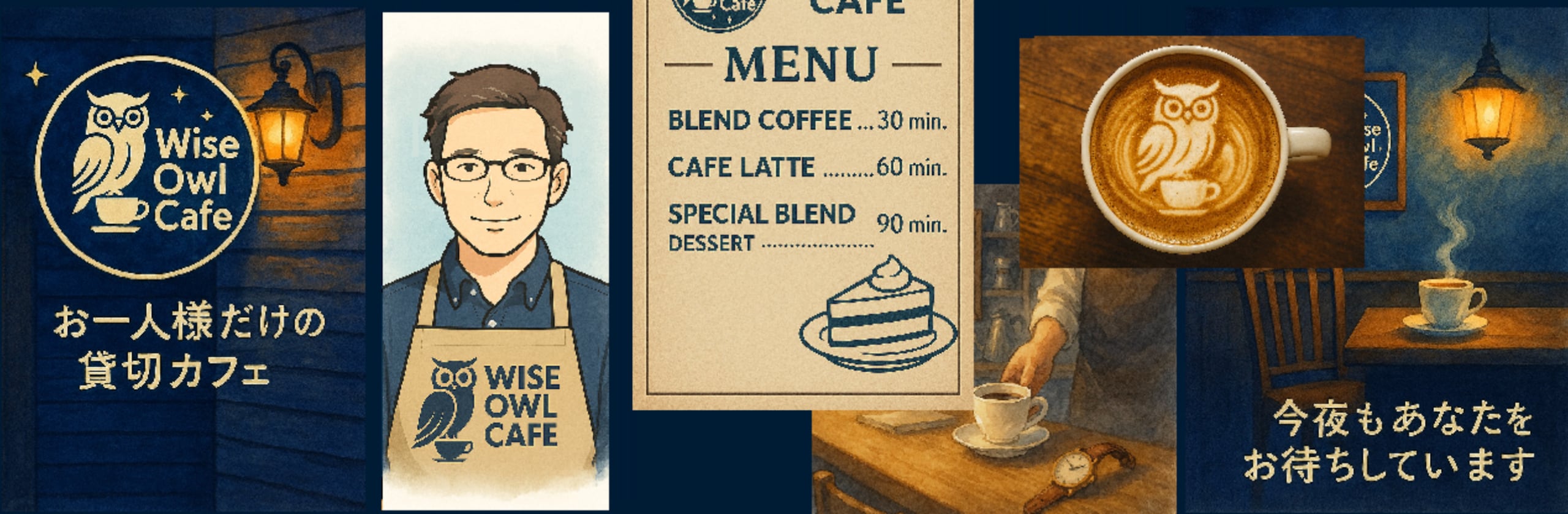 ようこそ、Wise Owl Cafeへ。 ここは、一晩にお客様をお一人だけお迎えする、静かな貸切カフェです。 ぼくは、このカフェのマスター。 人の声に耳を傾けることが好きで、この場所をひらきました。 【あなたにご用意するのは――】  愚痴でも悩みでも、取り留めのないおしゃべりでも、  安心して置いていける、あたたかなカウンター席です。